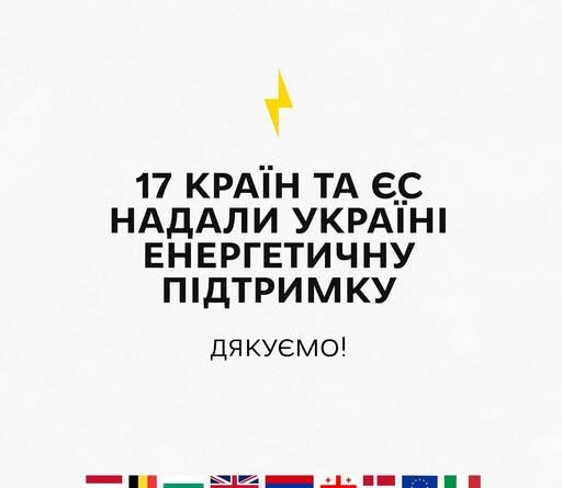 17 КРАЇН ТА ЄС НАДАЛИ УКРАЇНІ ВАЖЛИВУ ПІДТРИМКУ ДЛЯ СТАБІЛІЗАЦІЇ РОБОТИ ЕНЕРГЕТИЧНОГО СЕКТОРУ