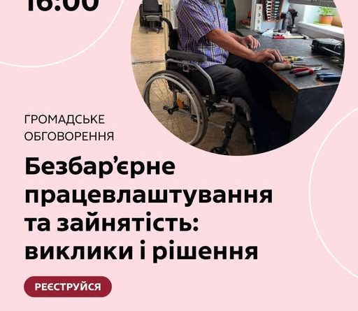 Долучайтеся до онлайн-обговорення «Безбар’єрне працевлаштування та зайнятість: виклики і рішення», яке відбудеться 23 лютого 2026 року о 16:00.