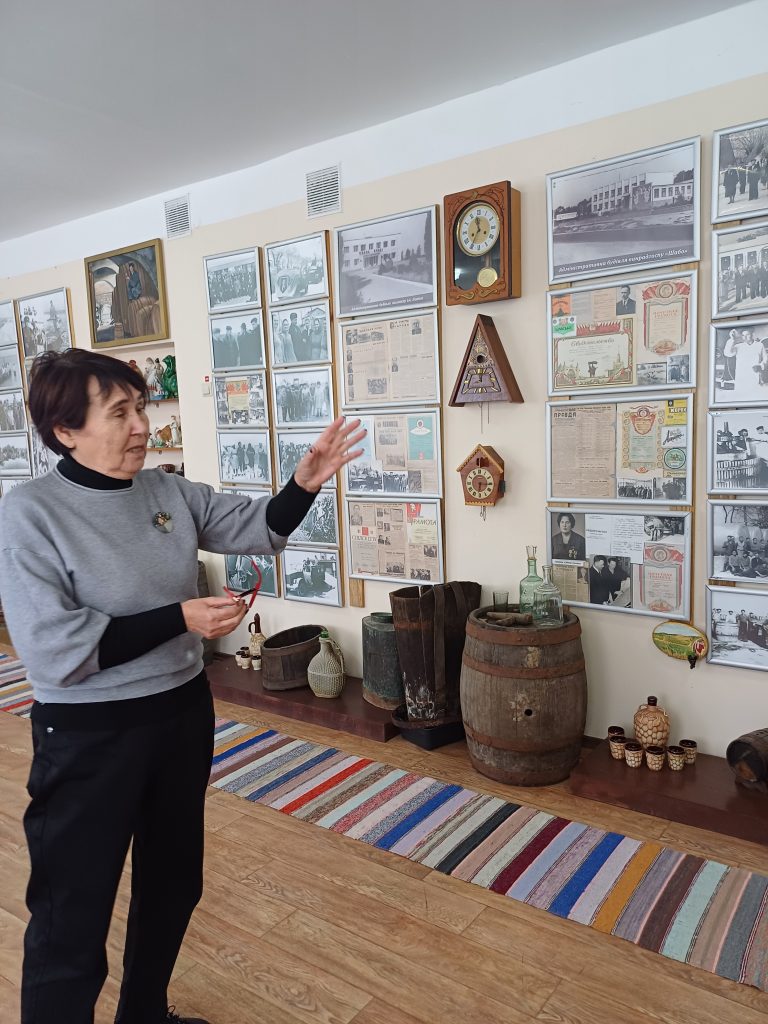 Директор Тетяна Денічекова ознайомила відвідувачів з експозиціями, що розміщені у кількох залах, та відображають історію села від заснування до сьогодення. Декоративно-ужиткові експонати, знаряддя праці, твори живопису та інші предмети дають уявлення про культурні традиції мешканців півдня України.