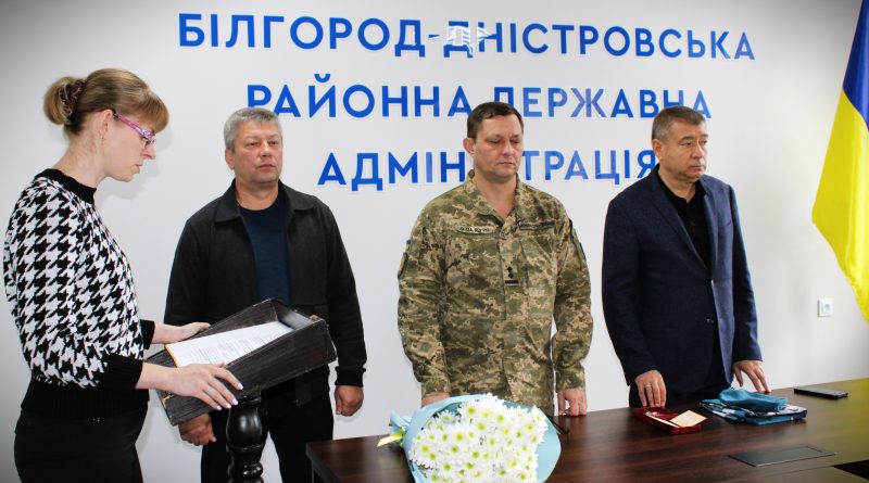 Сьогодні, 10 жовтня, в Білгород-Дністровській районній державній (військовій) адміністрації відбулася церемонія вручення державної нагороди — ордену «За мужність» ІІІ ступеню (посмертно) рідним українського воїна, який віддав своє життя за свободу України — сержанта КАТАРАНЧУКА Віктора Валерійовича (1975 р.н., жителя села Бритівка). Ця відзнака – нагадування про ціну незалежності, про тих, хто не повернувся додому, але назавжди залишився в строю нашої історії. Подвиг Героя Сержант КАТАРАНЧУК Віктор Валерійович загинув 20 квітня 2024 року в районі н.п. Іванівка Херсонської області, проявивши при цьому мужність і героїзм. Він до останнього подиху боронив нашу землю, знаючи, що без його жертви майбутнє може не настати. Він вибрав боротьбу, коли можна було відступити, вибрав Україну, коли можна було обрати власну безпеку. Вручення нагороди Нагороду матері загиблого захисника — Людмилі Григорівні — вручив голова (начальник) Білгород-Дністровської районної державної (військової) адміністрації Василь САМОКИШ, спільно із заступником начальника Білгород-Дністровського РТЦК та СП підполковником Віталієм СОЛОМАХОЮ та головою Шабівської сільської[…Читати далі…]