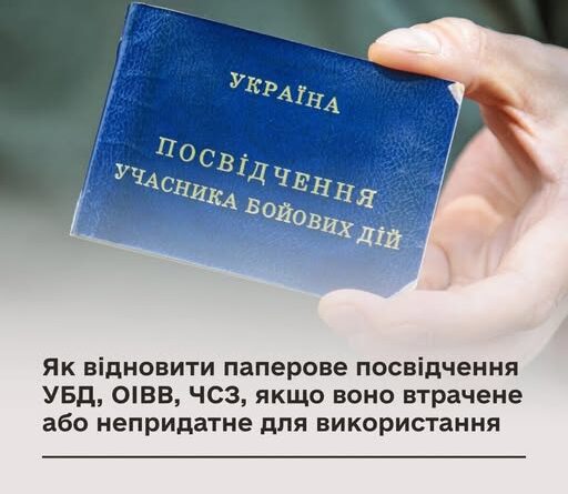 ЯК ВІДНОВИТИ ПАПЕРОВЕ ПОСВІДЧЕННЯ УБД, ОІВВ, ЧСЗ, ЯКЩО ВОНО ВТРАЧЕНЕ АБО НЕПРИДАТНЕ ДЛЯ ВИКОРИСТАННЯ