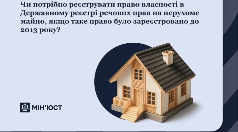 ЧИ ПОТРІБНО РЕЄСТРУВАТИ ПРАВО ВЛАСНОСТІ В ДЕРЖАВНОМУ РЕЄСТРІ РЕЧОВИХ ПРАВ НА НЕРУХОМЕ МАЙНО, ЯКЩО ТАКЕ ПРАВО БУЛО ЗАРЕЄСТРОВАНО ДО 2013 РОКУ?