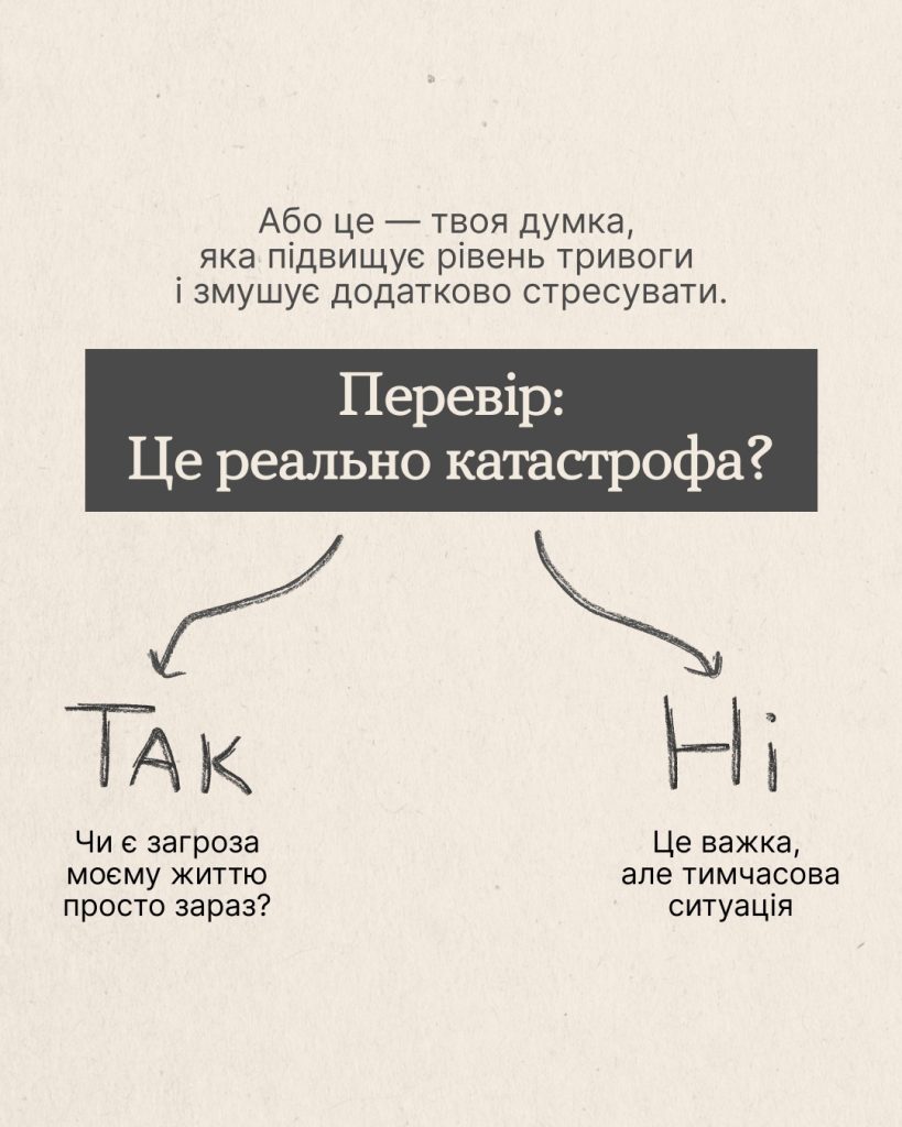 Адже інколи не така страшна ситуація, як її може малювати наш мозок. А якщо додати до автоматичних думок ще й неперевірені новини, чутки, нагнітання, високий рівень тривоги тобі гарантовано ![]()