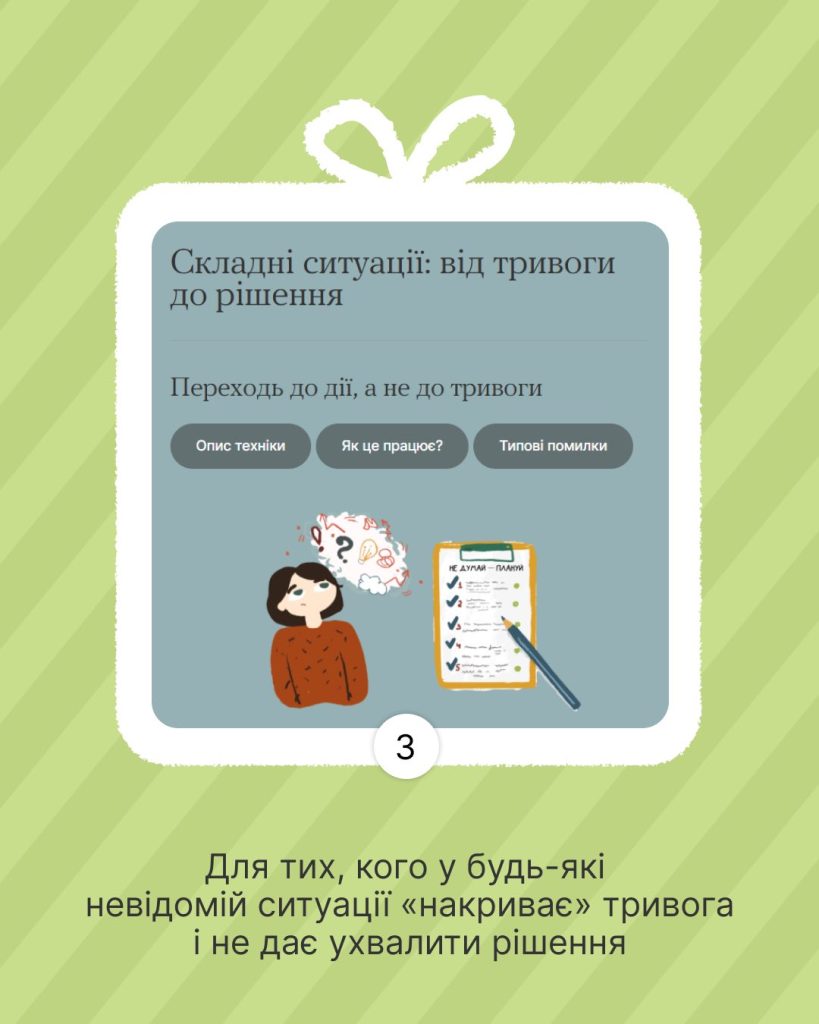 Безбар'єрність Новини Це тобі на новий рік — ціла карусель корисностей для роботи над собою. 08.01.202608.01.2026 y-editor На випадок, якщо захочеш покращити сон, навчитися спілкуватися з іншими спокійно, попрацювати з думками, емоціями та реакціями у стресових ситуаціях Пиши номер, отримай матеріал в директ, а тоді спробуй, відчуй різницю і живи трохи легше щодня