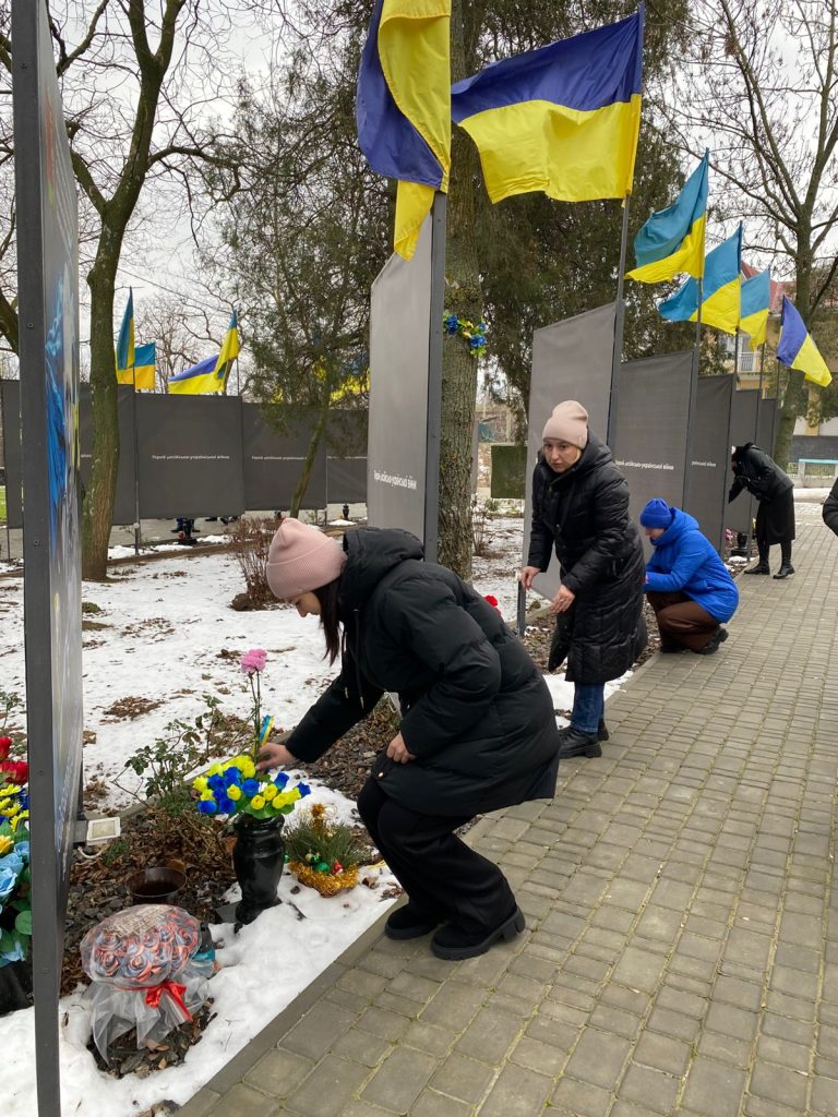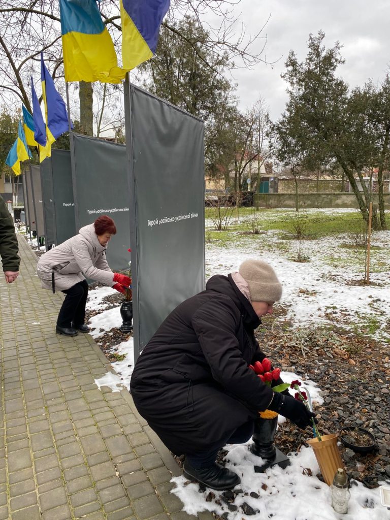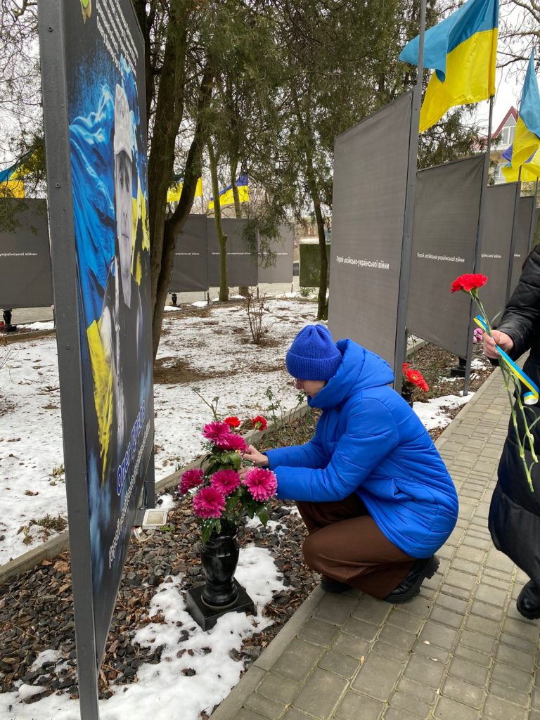На знак шани та вдячності усім, хто віддав свої життя за об’єднання українських земель та збереження територіальної цілісності України, учасники заходів поклали квіти до портретів загиблих захисників України на Алеї Слави.
