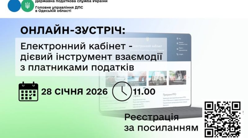 Головне управління ДПС в Одеській області запрошує платників податків регіону взяти участь в онлайн-зустрічі щодо функціональних можливостей Електронного кабінету як інструменту взаємодії з платниками податків.