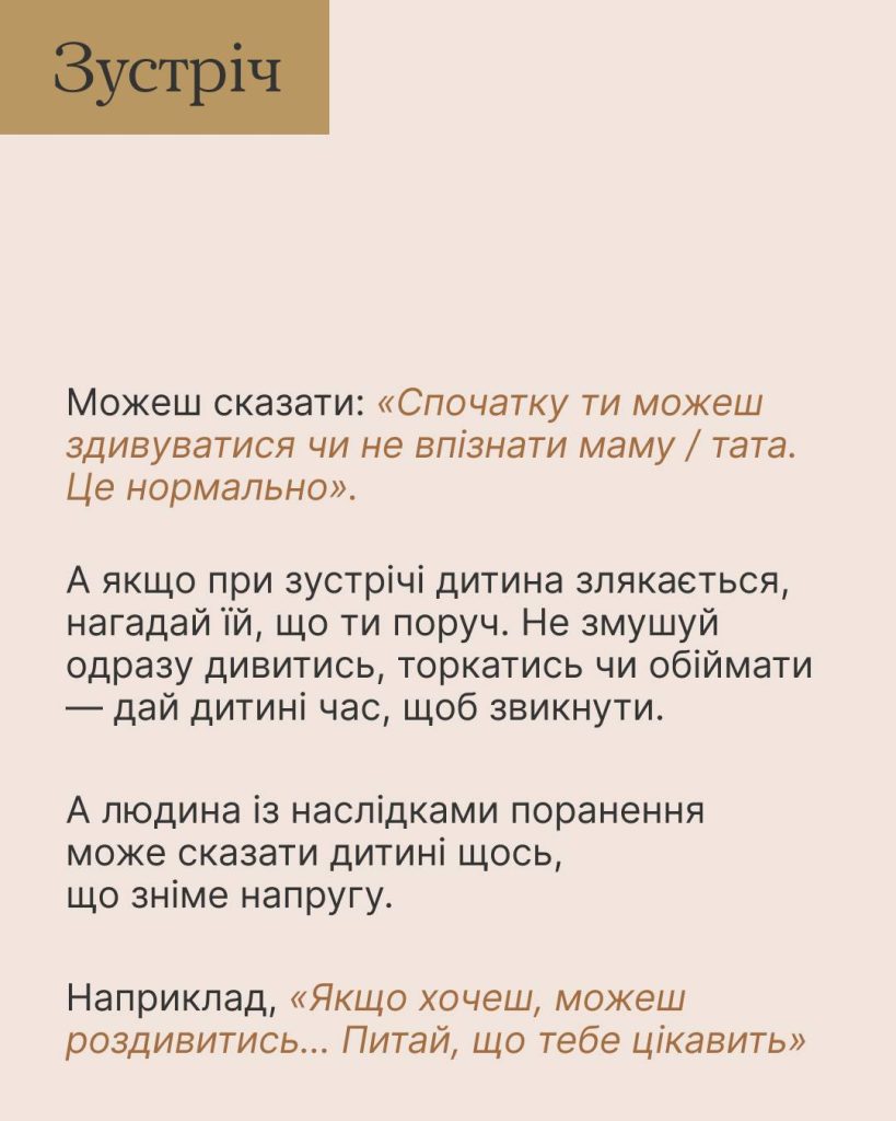 Гортай карусель із рекомендаціями від «Ти як?» та психологині Світлана Ройз, щоб зробити першу зустріч близьких після поранення теплішою і безпечнішою ![]()