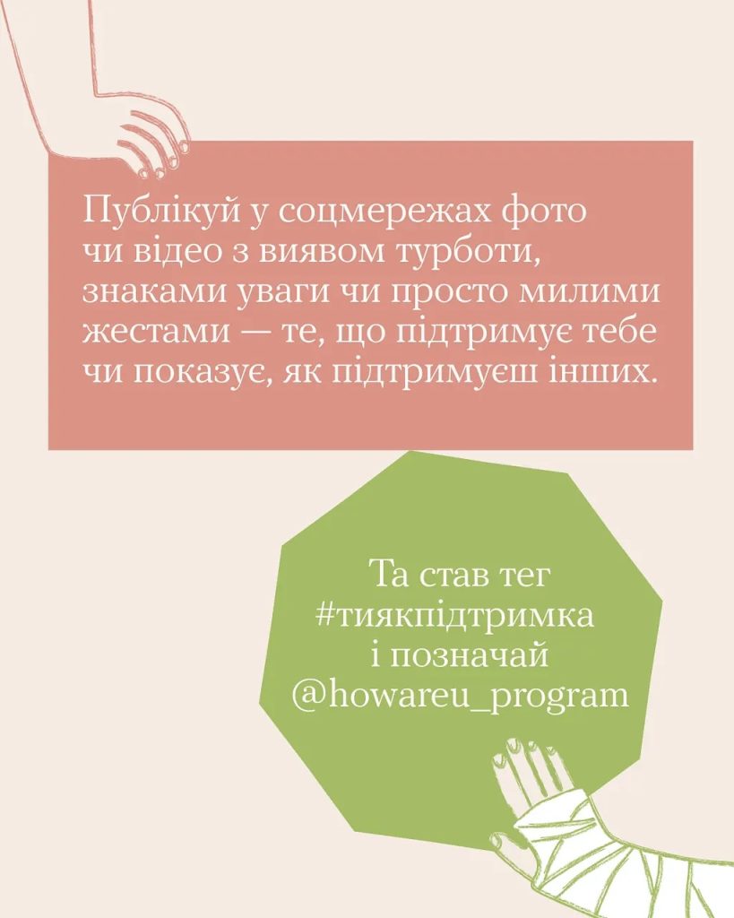 Вони у твоїх руках Покажи іншим, що ти бачиш турботу в моментах. А ми покажемо їх і іншим, а інші — ще іншим… Щоб простягнути руки підтримки тим, кому вона потрібна зараз