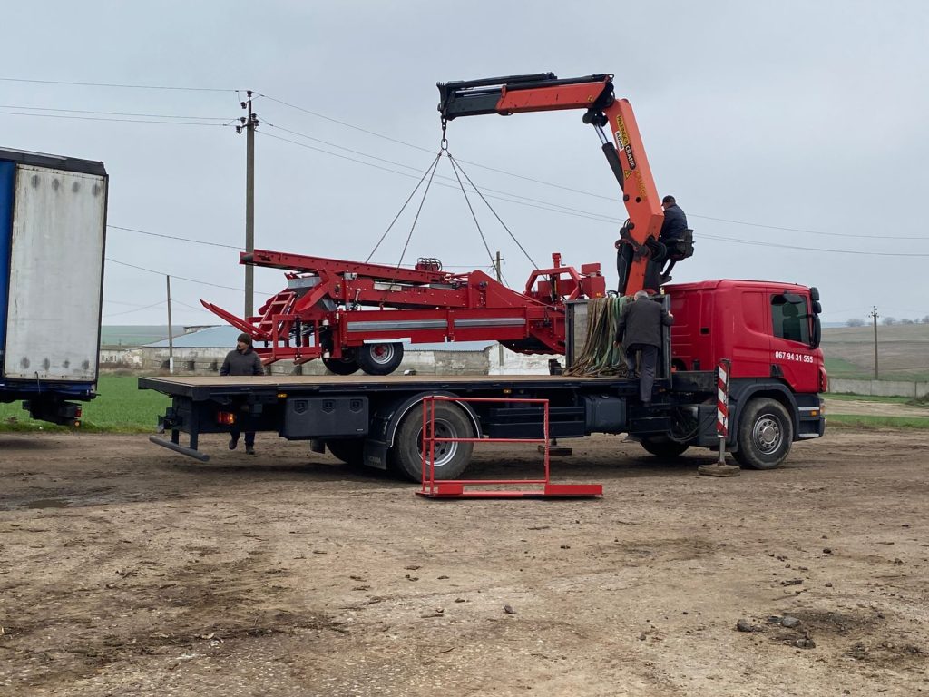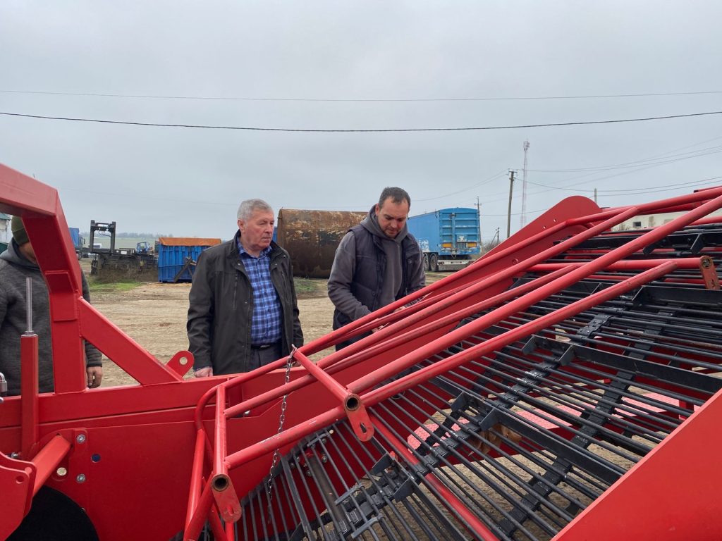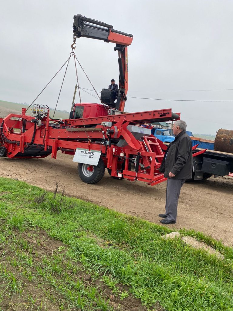 Під час робочого візиту Валентин МОГУРЯН був присутній в момент вивантаження новопридбаної господарством сільгосптехніки, а саме причепного комбайна Італійського виробництва для збирання батата.