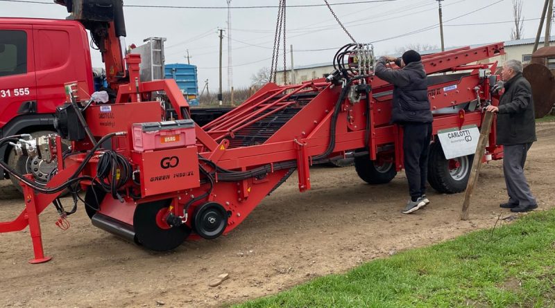 Під час робочого візиту Валентин МОГУРЯН був присутній в момент вивантаження новопридбаної господарством сільгосптехніки, а саме причепного комбайна Італійського виробництва для збирання батата.