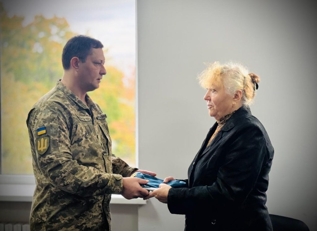 Окрім того, Віталій СОЛОМАХА, як особливу відзнаку, вручив Людмилі Григорівні бойовий прапор бригади та головний символ морської піхоти – берет морського піхотинця.