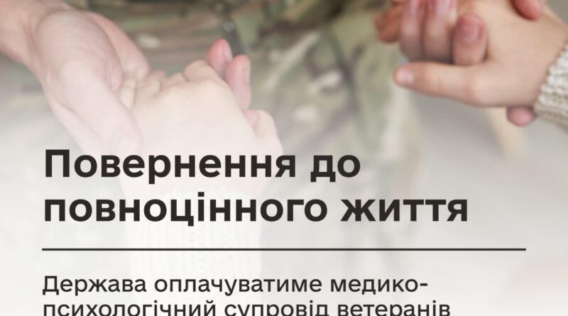 Міністерство у справах ветеранів України запрошує юридичних осіб та фізичних осіб-підприємців долучитися до реалізації експериментального проєкту з медико-психологічного супроводу ветеранів і ветеранок, які мають психічні та поведінкові розлади, пов’язані з уживанням психоактивних речовин, зокрема алкоголю.