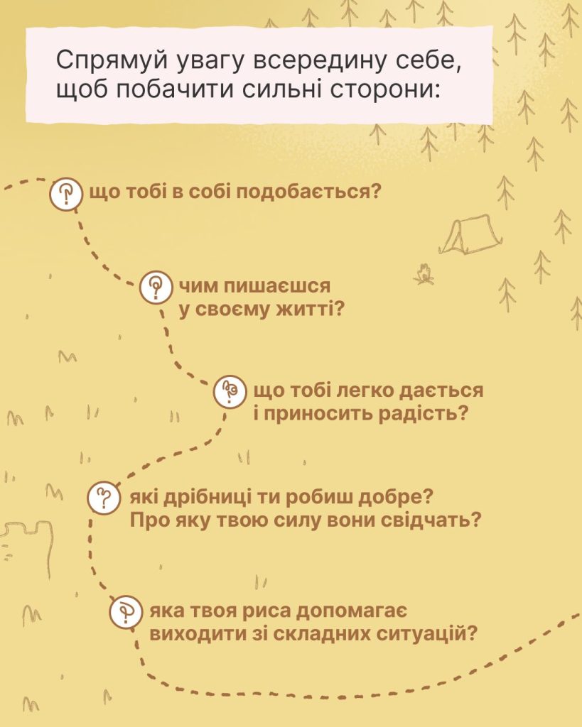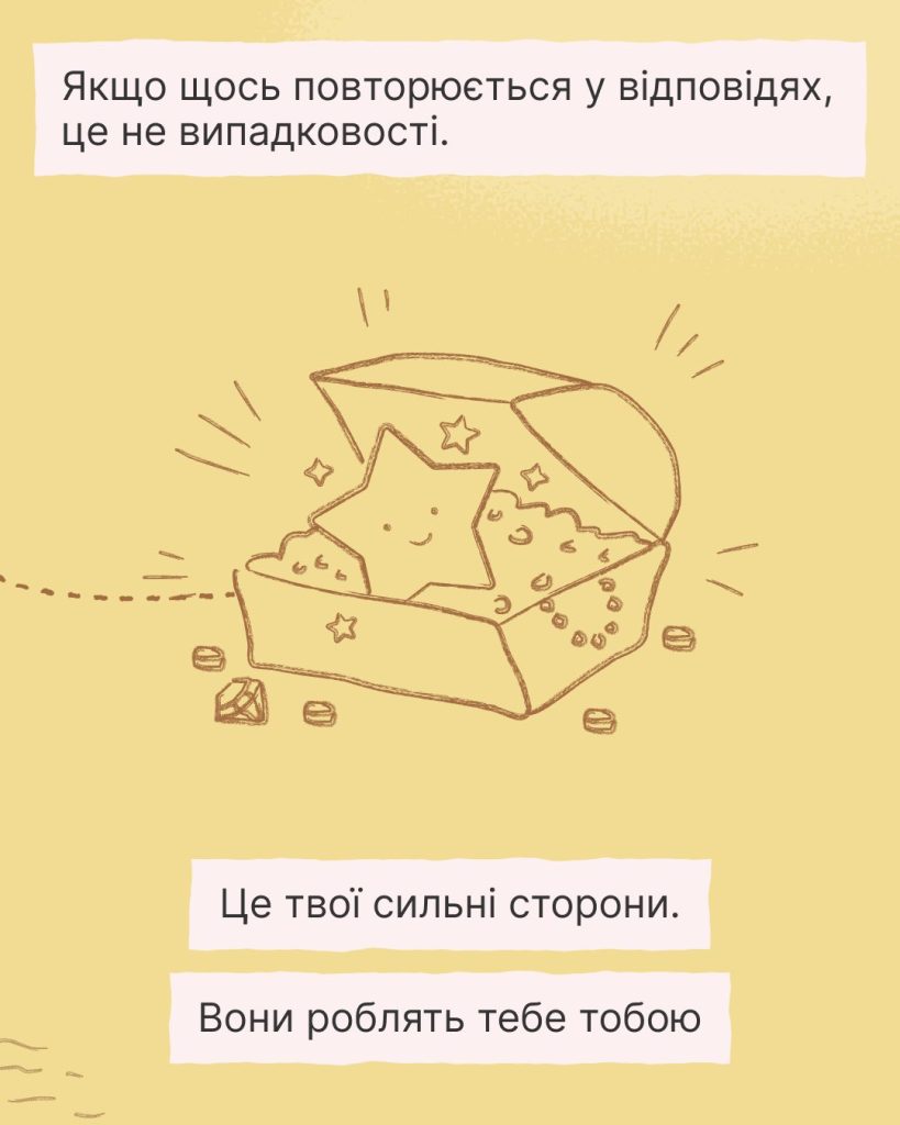 Навіть якщо з першого разу не повіриш, що це твої переваги, продовжуй шукати їх і записувати. Вони всі мають значення 😉