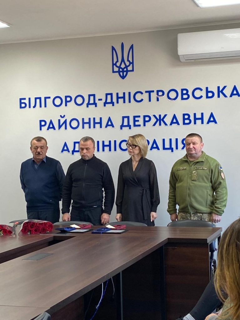 Високі державні нагороди матерям загиблих захисників вручали в.о. голови Білгород-Дністровської районної державної адміністрації Тетяна ДОМЧИНСЬКА, майстер-сержант Білгород-Дністровського РТЦК та СП Микола ДОНКОГЛО, секретар Білгород-Дністровської міської ради Олександр СКАЛОЗУБ, Маразліївський сільський голова Віктор ТОПОР.