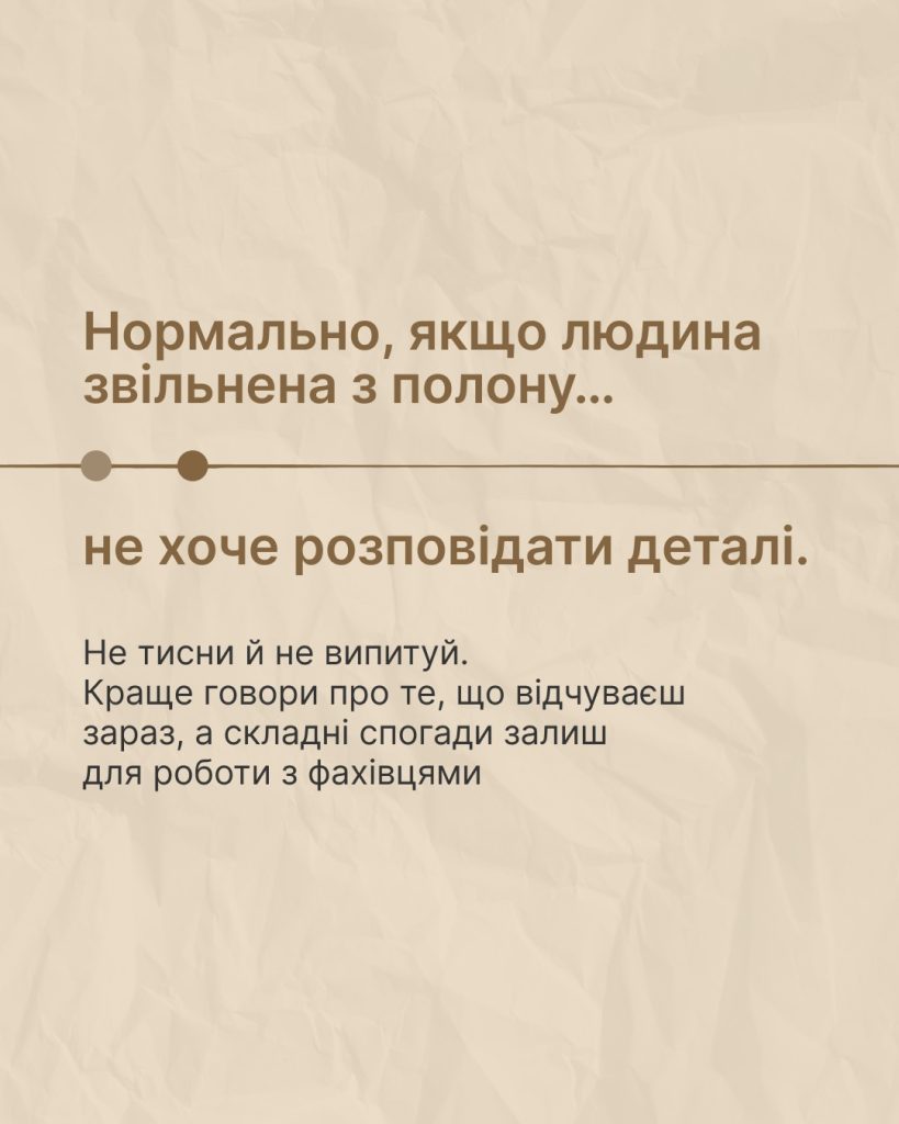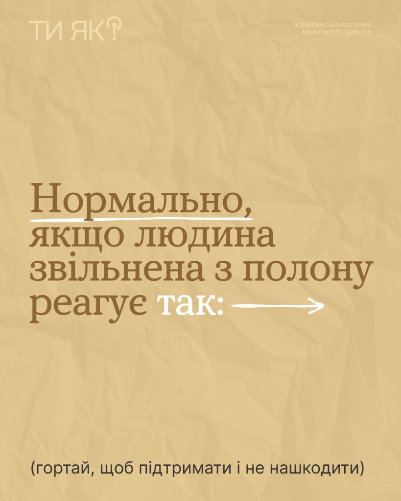 Більше про те, як взаємодіяти зі звільненими з полону, дізнайся з інфобоксу на платформі «Ти як?»: http://howareu.com/…/vzaiemodiia-zi-zvilnenymy-z-polonu…