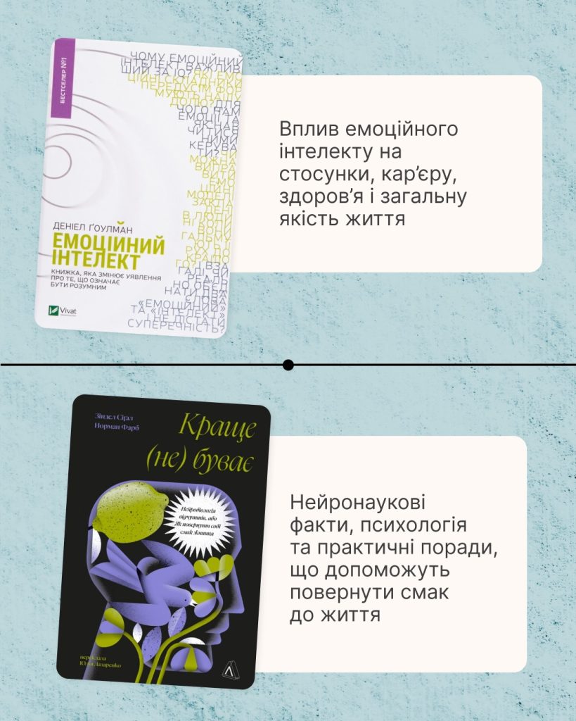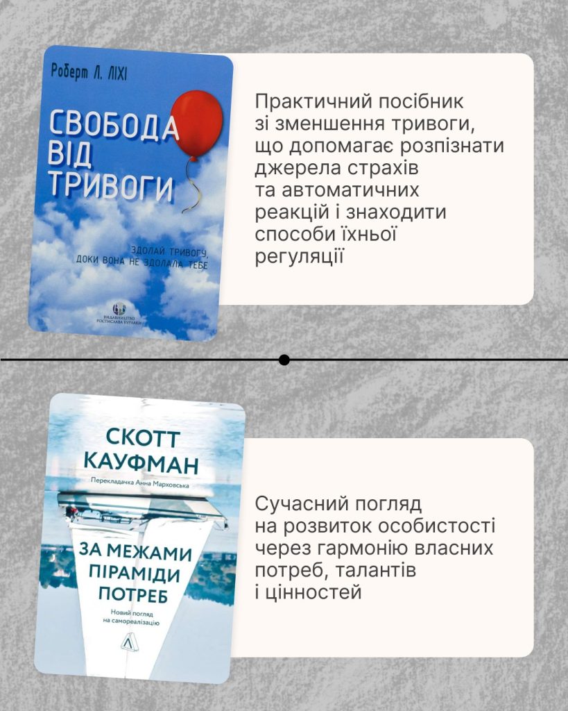 У такі часи книжка може стати добрим порадником: вказати напрямок, підказати дієвий спосіб самодопомоги або ж допомогти віднайти нові сенси через рефлексію.
