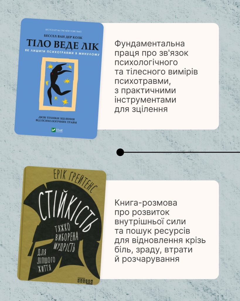 Добірку створено у межах Всеукраїнської програми ментального здоров’я «Ти як?» — ініціативи першої леді Олена Зеленська, разом із Факультет Психології КНУ імені Тараса Шевченка