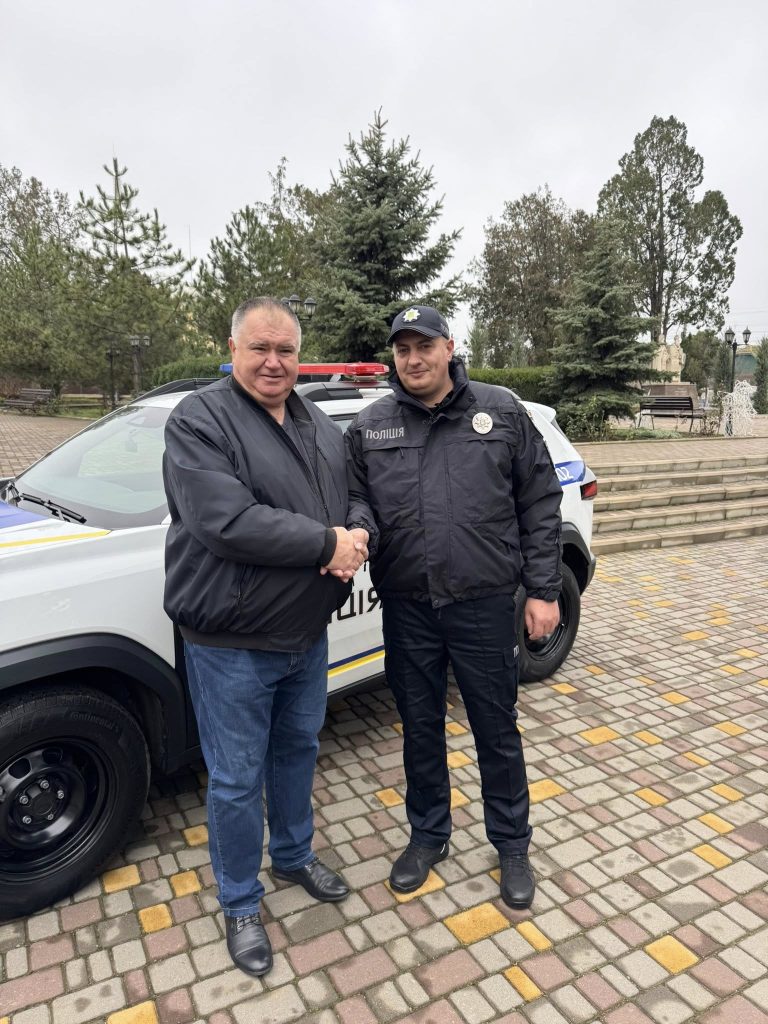 Михайло ПОПОВ урочисто вручив поліцейському офіцерові ключі від автомобіля та станції.