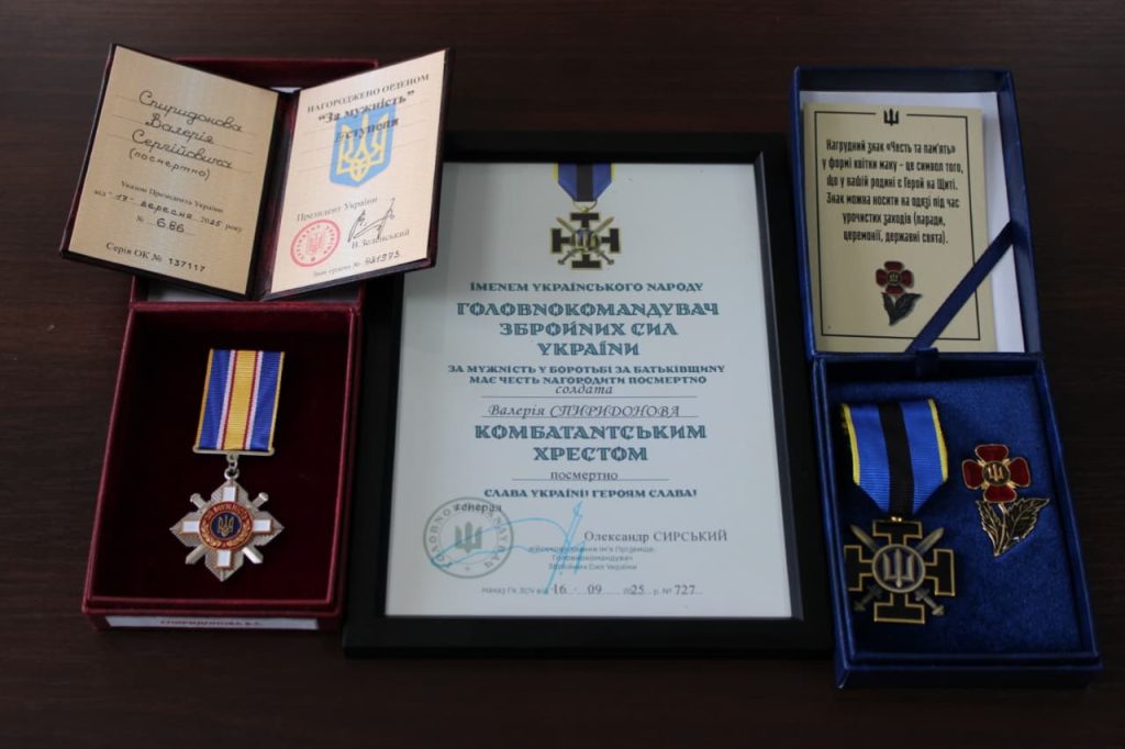 Родині Валерія СПИРИДОНОВА також врученоНагрудний знак «Честь та пам’ять». Нагороди отримала сестра загиблого захисника – Вікторія Сергіївна.