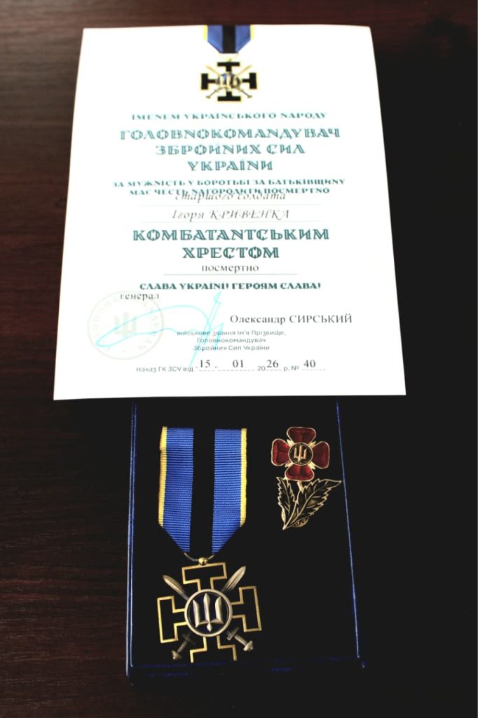 Згідно Наказу Головнокомандувача ЗСУ старший солдат КРИВЕНКО Ігор Вікторович посмертно нагородженийКОМБАТАНТСЬКИМ ХРЕСТОМ.