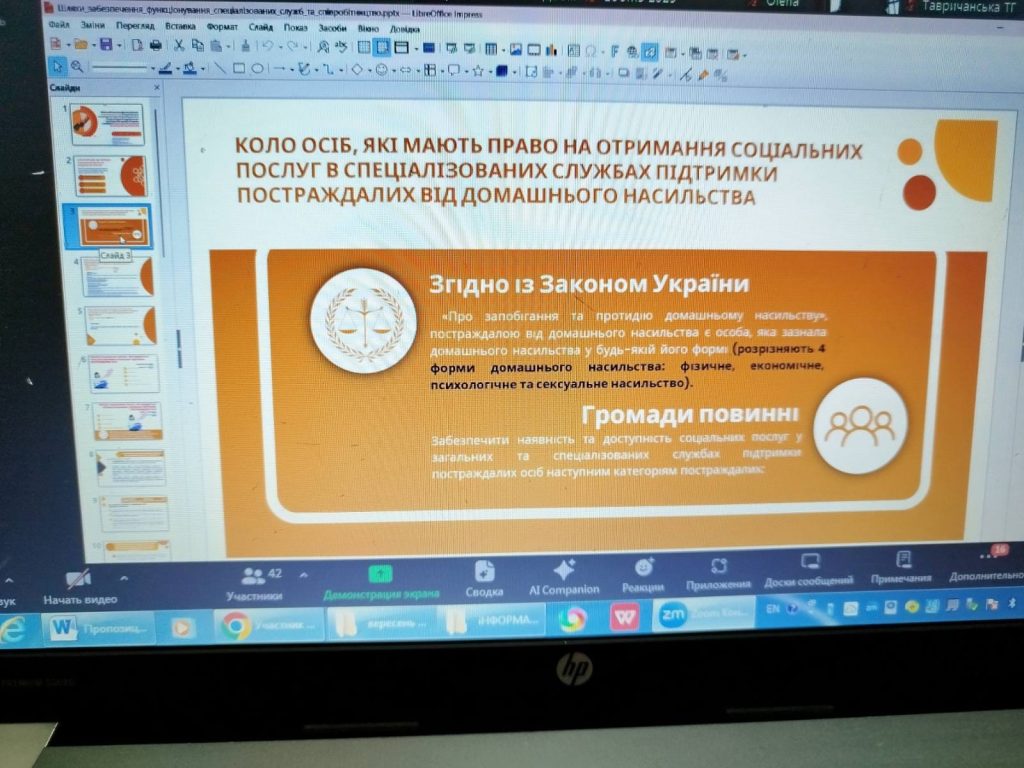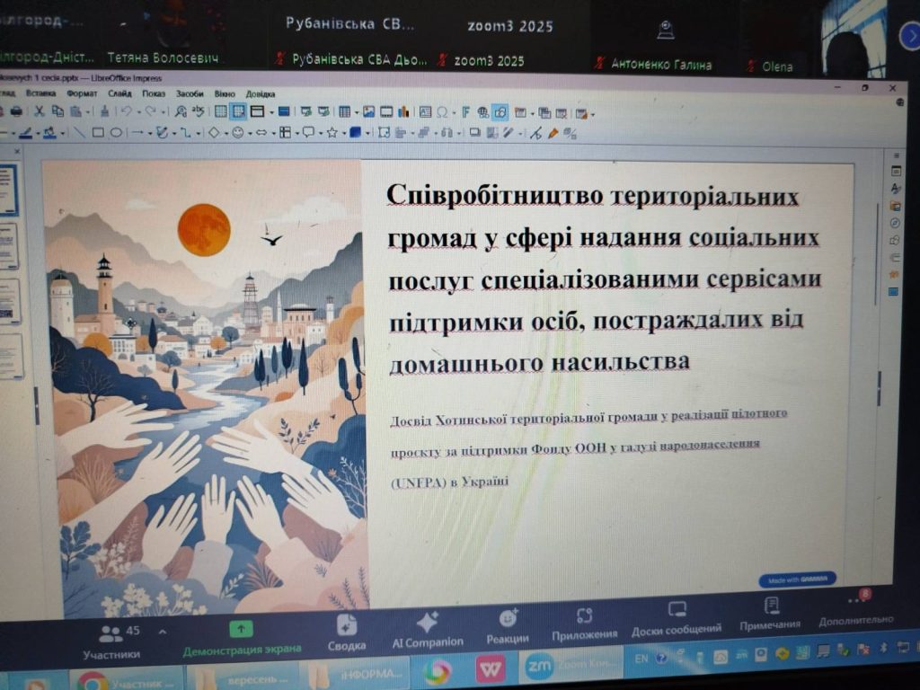 У заході взяла участь Алла КОНОНЕНКО, головний спеціаліст відділу з питань координації надання соціальних послуг та підтримки сім’ї управління соціального захисту населення Білгород-Дністровської районної державної адміністрації. Використання цих матеріалів у роботі координаторів дозволить підвищити ефективність реагування на випадки насильства, забезпечити сталість надання соціальних послуг і посилити потенціал громад у сфері захисту прав постраждалих осіб.