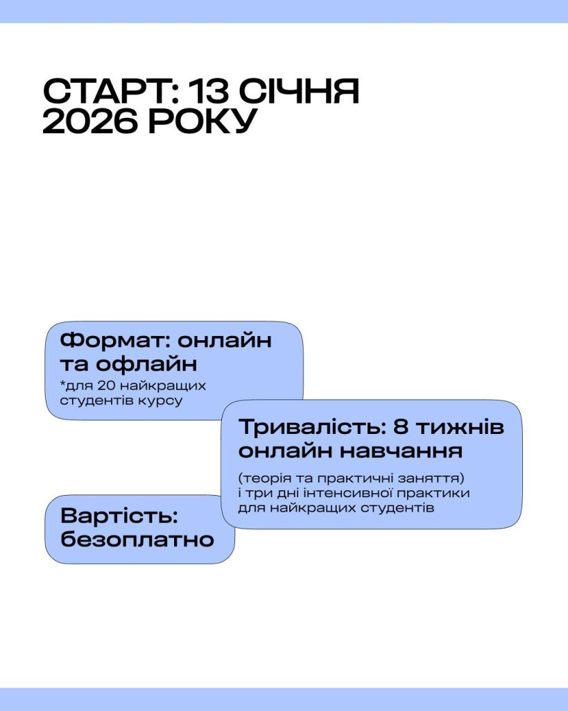 Формат: спершу онлайн, далі — офлайн для 20 найкращих студентів онлайн-курсу
