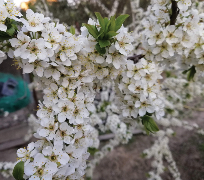 Фаза цвітіння. Літають бджоли, цвітуть сади! Однак хвороби не чекають: саме в цей період відбувається зараження моніліозом, альтернаріозом та ін. хворобами. Та найбільшої шкоди завдає моніліальний опік на кісточкових. В цю фазу розвитку потрібно використовувати препарати нетоксичні для бджіл. На протязі декількох років гарно зарекомендував себе фунгіцид  Сігнум 10гр/10літрів воли з додаванням препарату від шкідників  Енжіо 247 SC 3,6мл/10л. води.