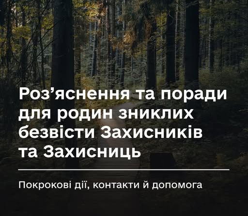 РОЗ’ЯСНЕННЯ ТА ПОРАДИ ДЛЯ РОДИН ЗНИКЛИХ БЕЗВІСТИ ЗАХИСНИКІВ ТА ЗАХИСНИЦЬ: ПОКРОКОВІ ДІЇ, КОНТАКТИ Й ДОПОМОГА