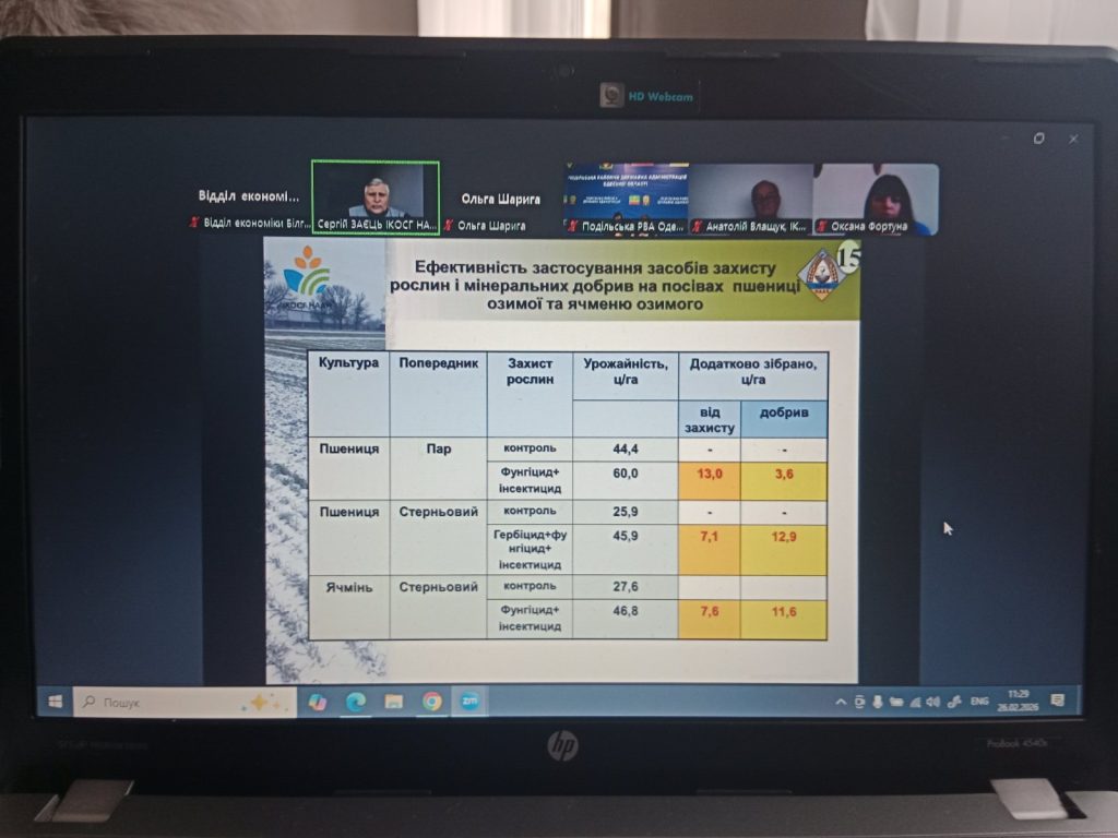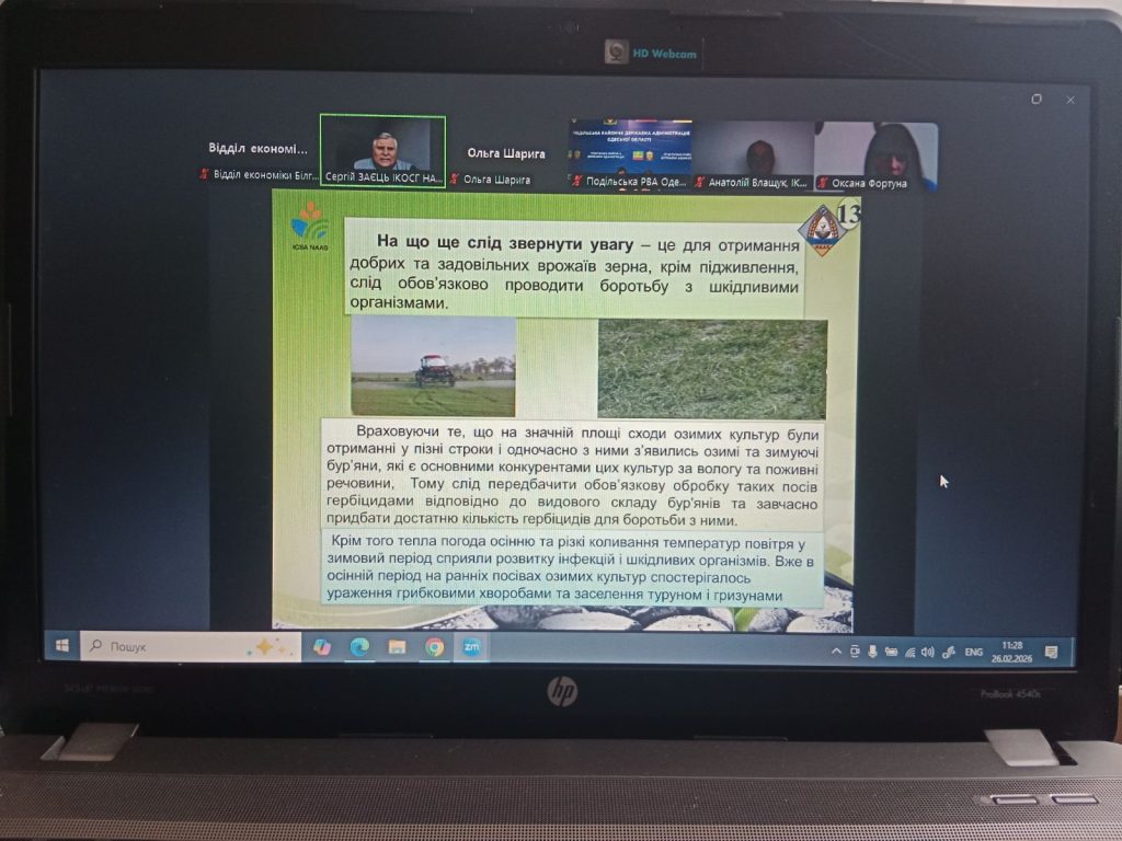 Сьогодні, 26 лютого, за ініціативою Міністерства економіки, довкілля та сільського господарства України у форматі ZOOM конференції відбувся семінар на тему “Шляхи мінімізації наслідків кліматичних змін та впровадження ресурсозберігаючих технологій у сільському господарстві”. Спікерами семінару були фахівці Херсонського обласного центру з гідрометеорології та Інституту кліматично орієнтованого сільського господарства НААН.