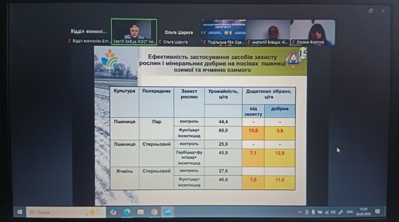 Сьогодні, 26 лютого, за ініціативою Міністерства економіки, довкілля та сільського господарства України у форматі ZOOM конференції відбувся семінар на тему “Шляхи мінімізації наслідків кліматичних змін та впровадження ресурсозберігаючих технологій у сільському господарстві”. Спікерами семінару були фахівці Херсонського обласного центру з гідрометеорології та Інституту кліматично орієнтованого сільського господарства НААН.