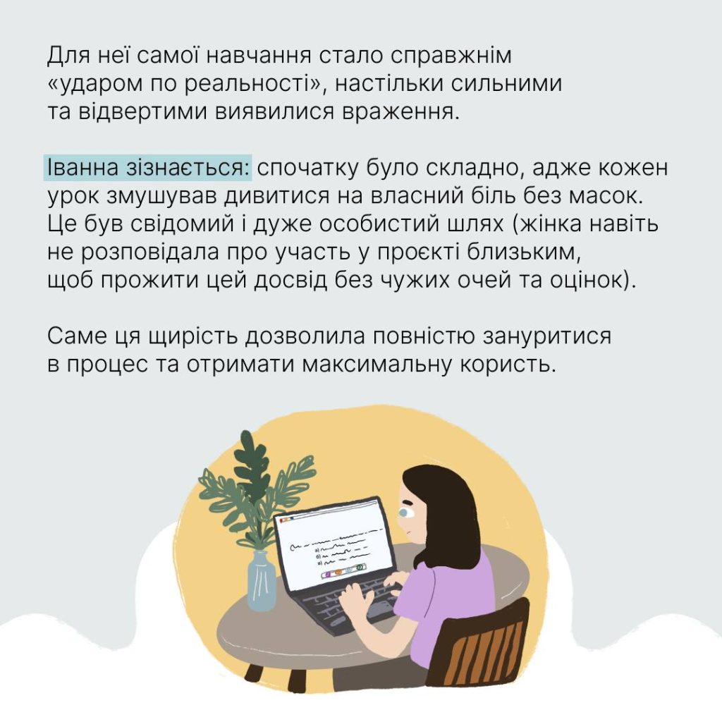 Однією з учасниць проєкту стала Іванка Панчук. Її історія — у каруселі 👉