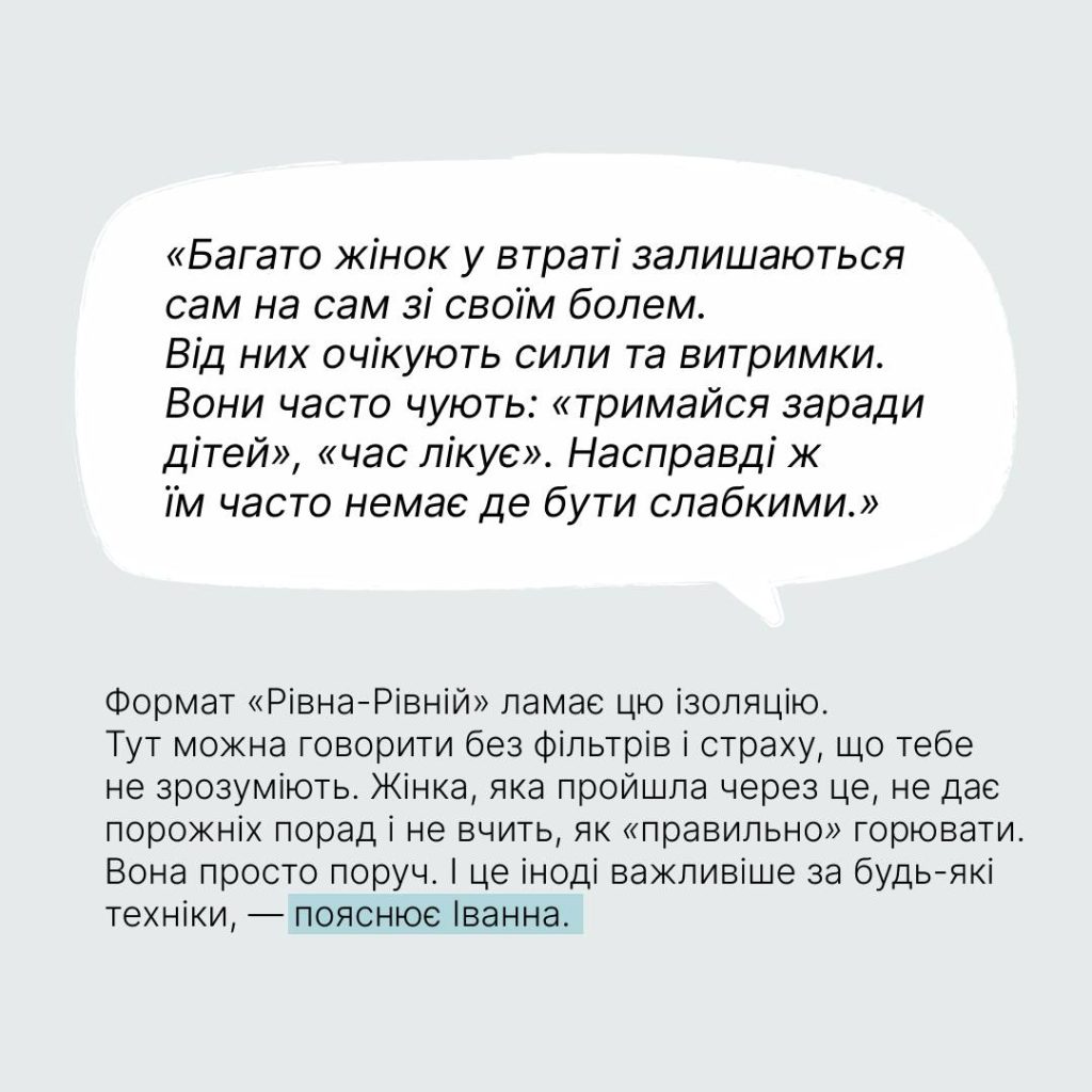 ✏️ Гортай та дізнайся більше про проєкт «Рівна-Рівній: проживання досвіду втрати». Його створено в межах Всеукраїнської програми ментального здоров’я «Ти як?» — ініціативи першої леді Олена ЗеленськаКоординаційний центр КМУ / Mental Health UA спільно з Мінветеранів за підтримки БФ «Разом з Кернел». Розробку, науковий супровід та організацію освітнього процесу здійснює Український католицький університет UCuniversity.