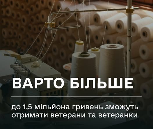 Нові можливості для ветеранського бізнесу! Стартувала грантова програма “ВАРТО БІЛЬШЕ” від Українського ветеранського фонду Мінветеранів — це шанс для ветеранів, ветеранок та їхніх рідних, а також сімей загиблих Захисників і Захисниць отримати від 500 тисяч до 1,5 млн грн на започаткування або масштабування власного бізнесу. Конкурс реалізується за підтримки агровиробничої компанії KERNEL.