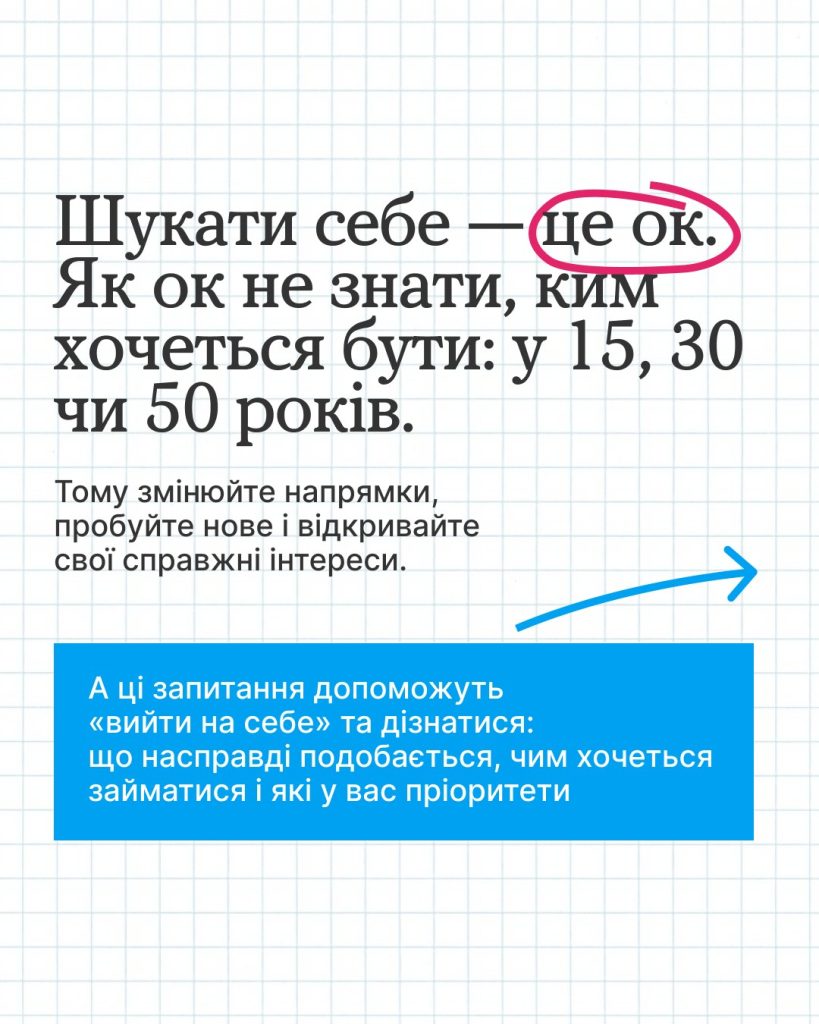 Через пізнання себе, своїх цінностей, уподобань та страхів: спробуйте пройтися по них, якщо відчуваєте себе «не на своєму місці» чи прагнете змін.