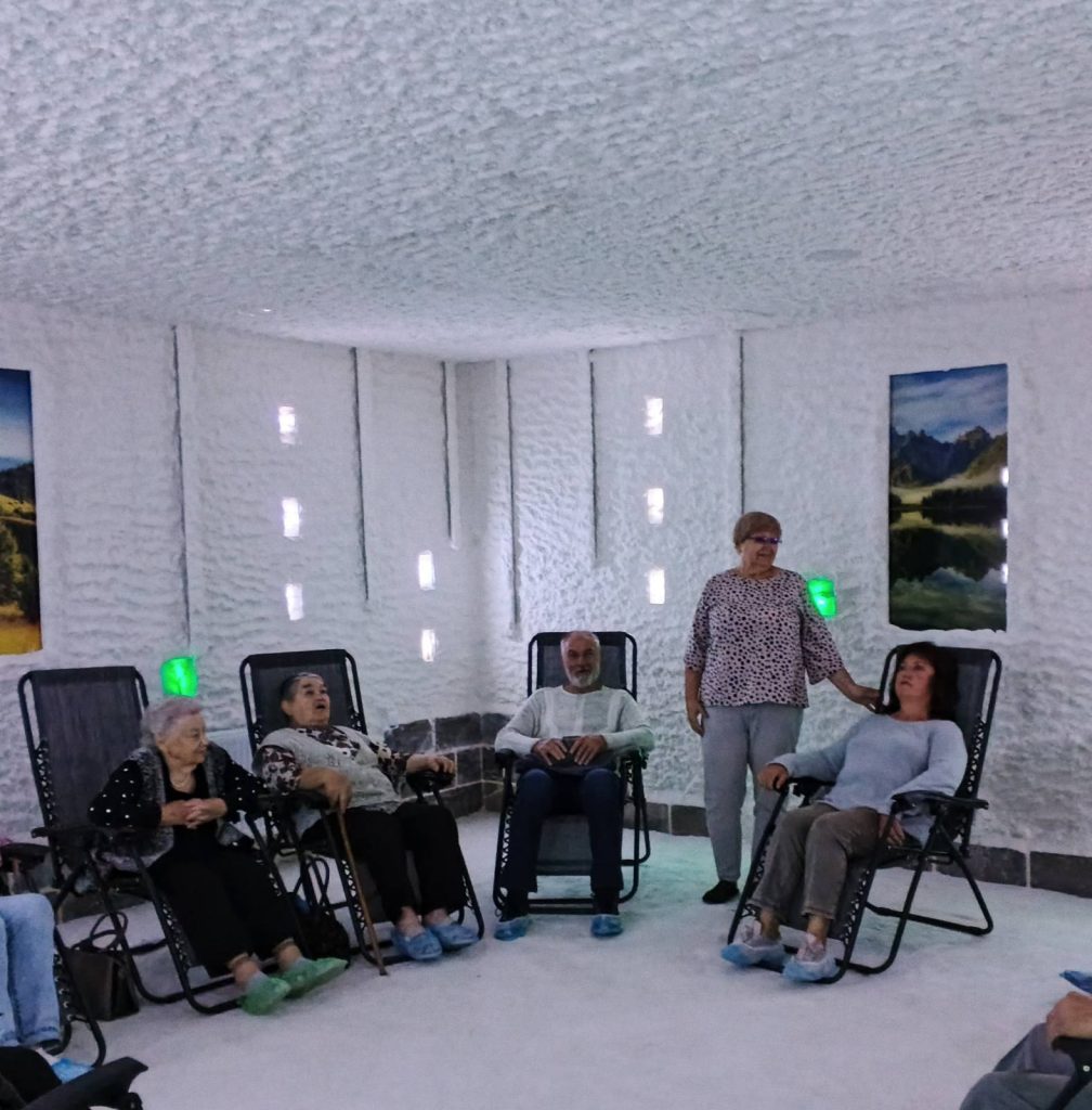 Фахівчиня супроводу ветеранів\ветеранок та демобілізованих осіб Лариса Гільова (стоїть) під час групової зустрічі членів родин ветеранів\ветеранок у кімнаті сольової терапії. Фото надала Лариса