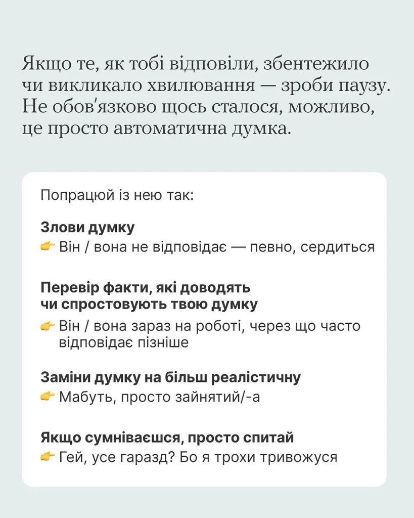 А у каруселі — кілька підказок, як менше перейматися через повідомлення. Спробуй, якщо щось розхвилює твій спокій