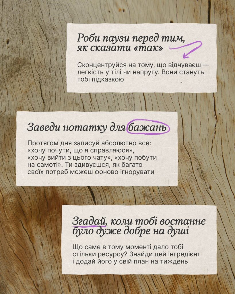 Для цього зверни увагу на прості щоденні речі. Зроби невелику ревізію різних сфер життя, щоб знову почути свій голос.